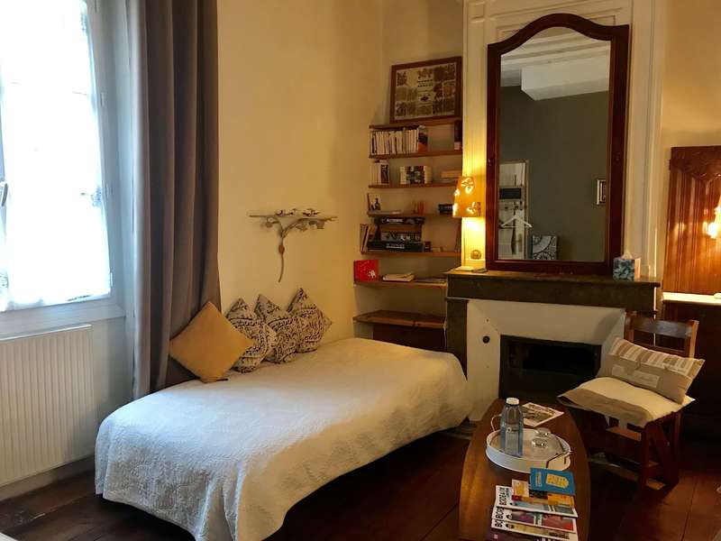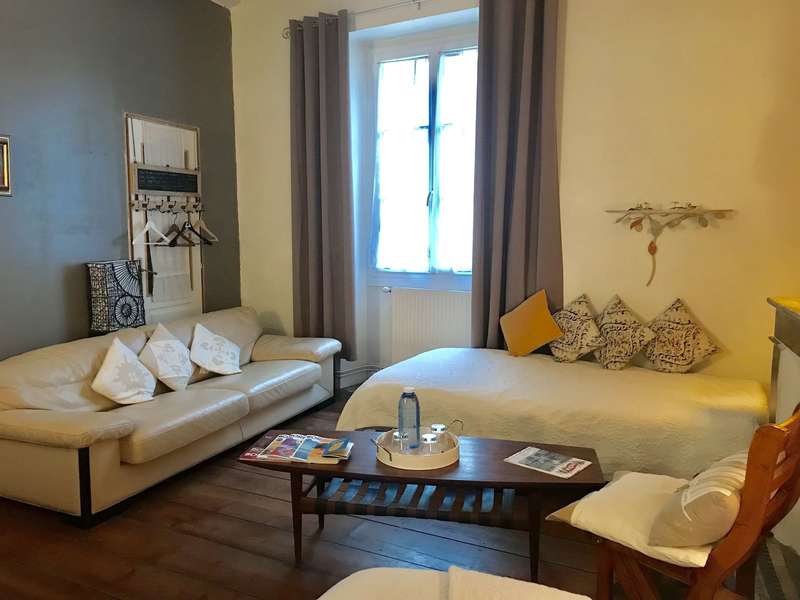 Exposée plein sud, dans une petite rue très calme, votre chambre est équipée d’un lit « Queen size » 180x200, aménageable également en deux lits simples 90x200. Un lit supplémentaire de 90x190 permet d’accueillir trois personnes. Elle dispose également d’une mezzanine avec lit simple couchage de 90*190. Ainsi, l’ensemble permet d’accueillir une famille - Un couple avec 1 ou 2 enfants - ou un groupe de 3, 4 ami(e)s.