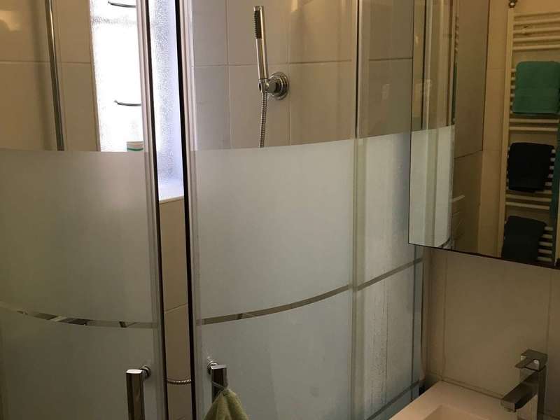 La salle de bain privée est située sur le même palier et est équipée d’une douche.