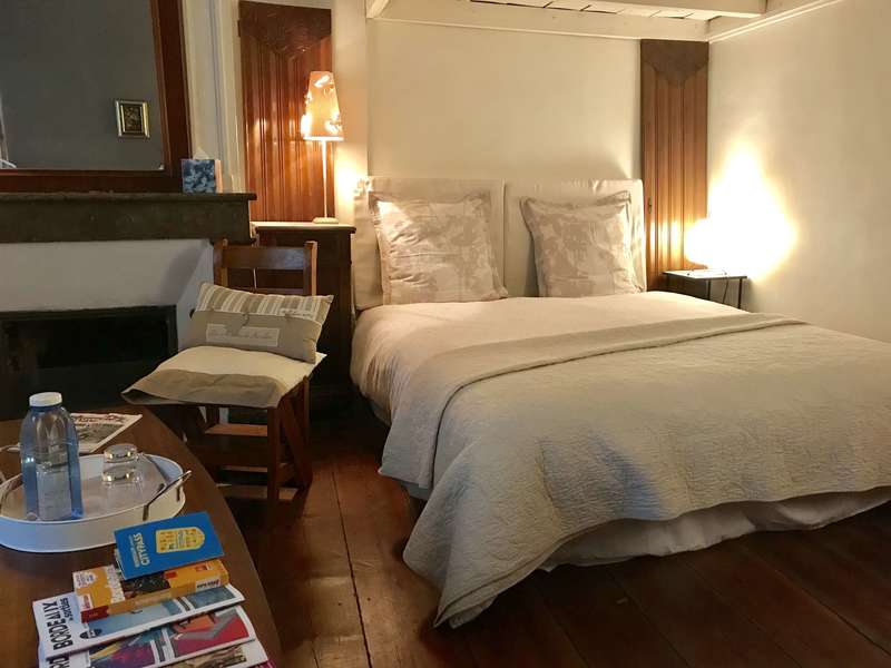 Les + : Chambre romantique et cheminée décorative et plancher au sol.